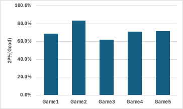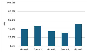 Game5は50%を超えて良かったものの、Game1からGame4までは40%以下と軒並み低水準。