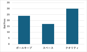 そこでは、クオリティ、ボールキープ、スペースでのミスがおよそ等間隔に発生していたと分かった。